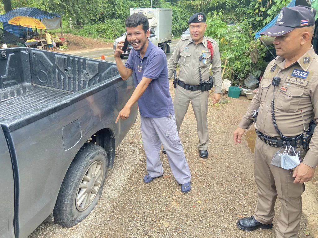 วันที่ 8 ต.ค.2566 เวลา 11.00 น. ด่านตรวจแก่งปันเต๊า(สภ.เชียงดาว) โดยมี ร.ต.อ.บรรจบ อุตรศรี รอง สวป./หน.ชป.ด่านตรวจฯ พร้อมกำลังด่านฯตรวจ ได้มีประชาชนร้องขอความช่วยเหลือรถยนต์ยางเเตก บริเวณตลาดเเก่งปันเต๊า จึงเข้าตรวจสอบพบว่ารถยนต์ของประชาชนดังกล่าวล้อหลังยางเเตกไม่ สามารถเดินทางไปต่อได้ จึงได้ช่วยเหลือประชาชน โดยการช่วยเข็นพ้นการกีดขวางการจราจรและช่วยนำยางรถยนต์ที่รั่วไปทำการเปลี่ยนยางที่ร้านซ่อมยางรถยนต์ จนเดินทางได้ปกติ
