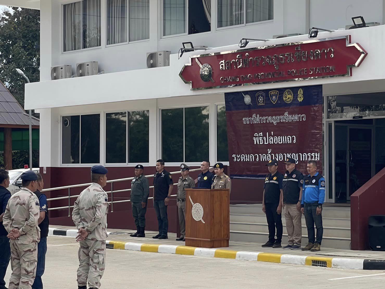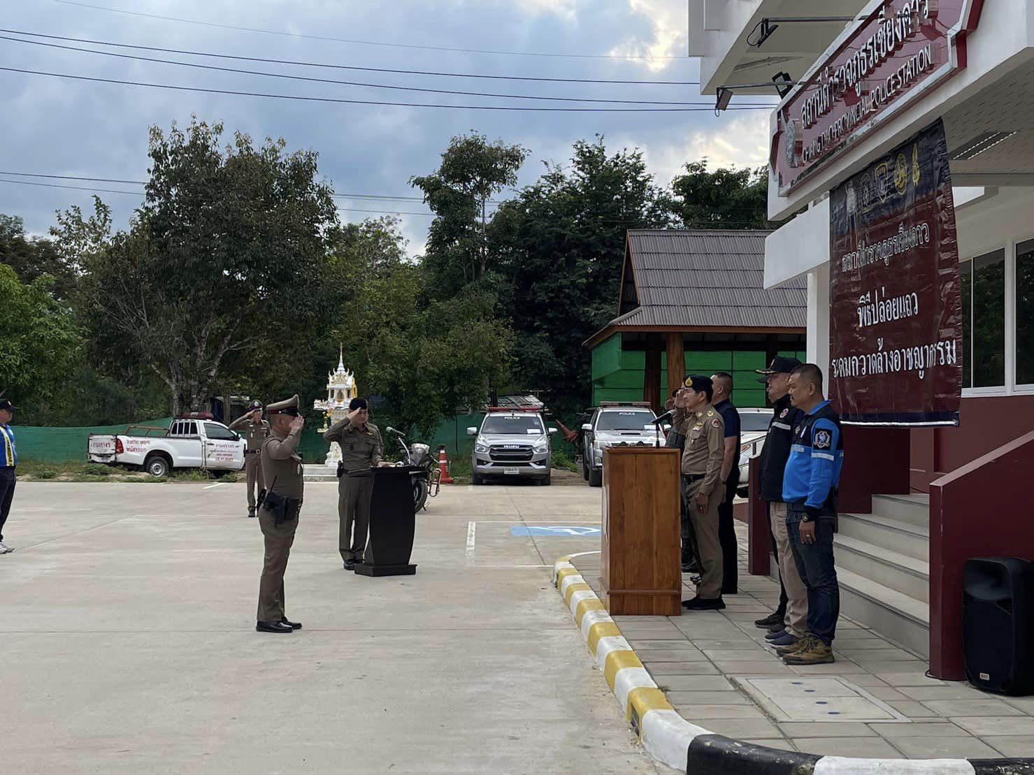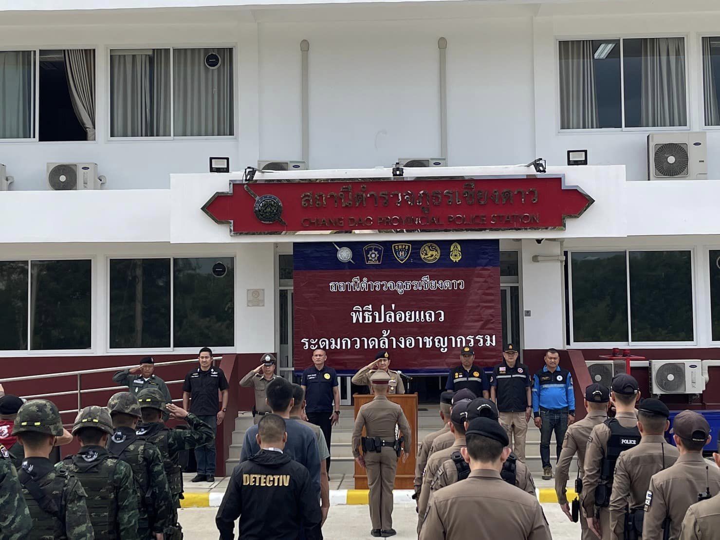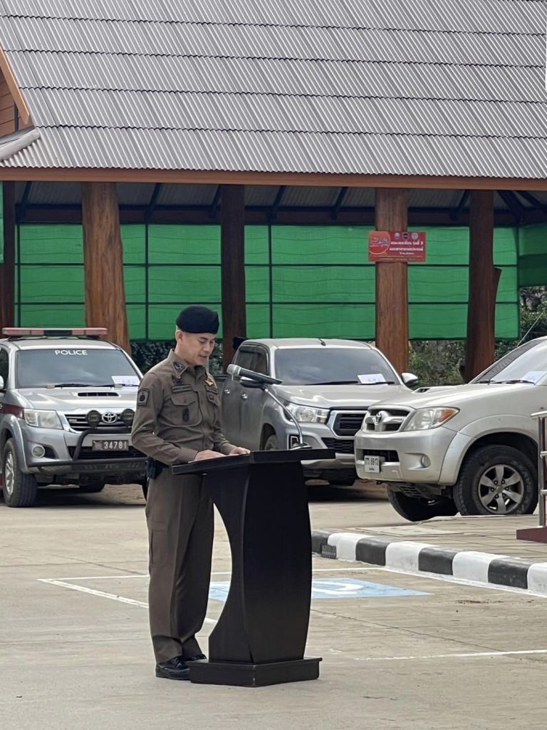 พ.ต.อ.เสกสรรค์ ขันคำนันต๊ะ ผกก.สภ.เชียงดาว ปล่อยแถวระดมกวาดล้างอาชญากรรมในช่วงเทศกาลปีใหม่ 2567 โดยมีนายกฤตพล รชตเมธานนท์ นายอำเภอเชียงดาว เป็นประธานในพิธีฯ