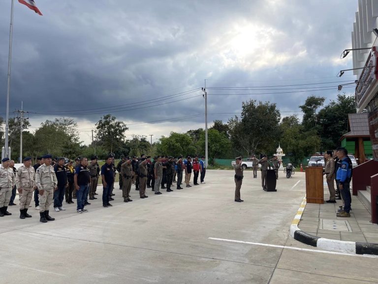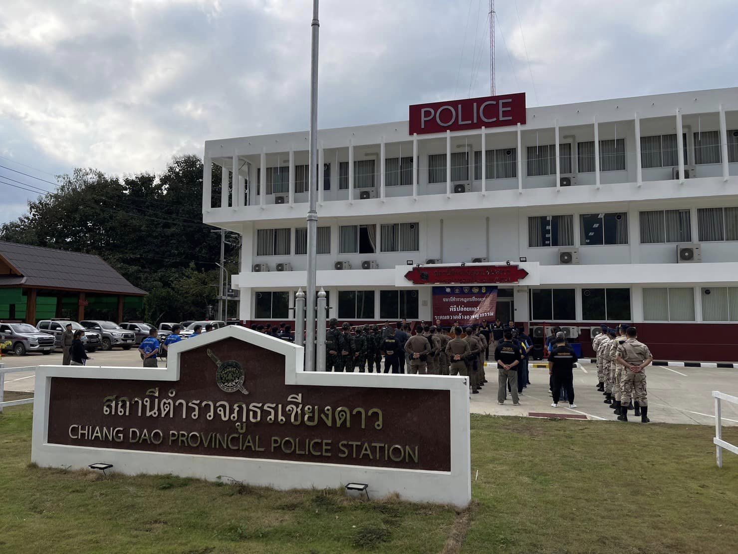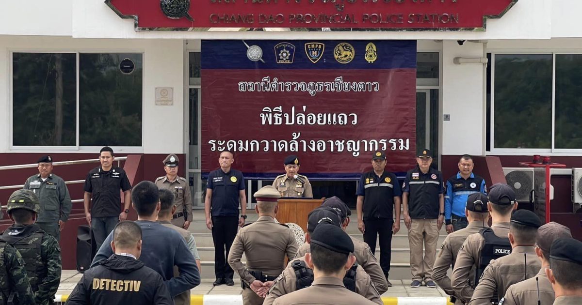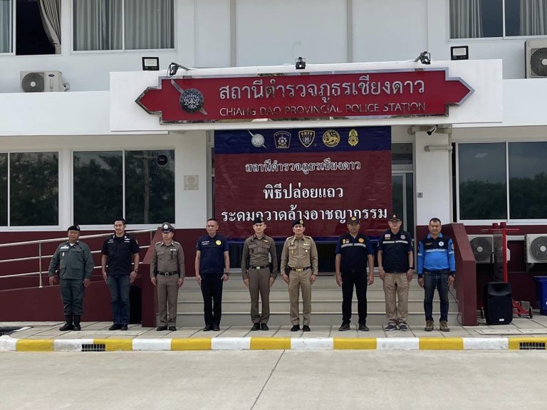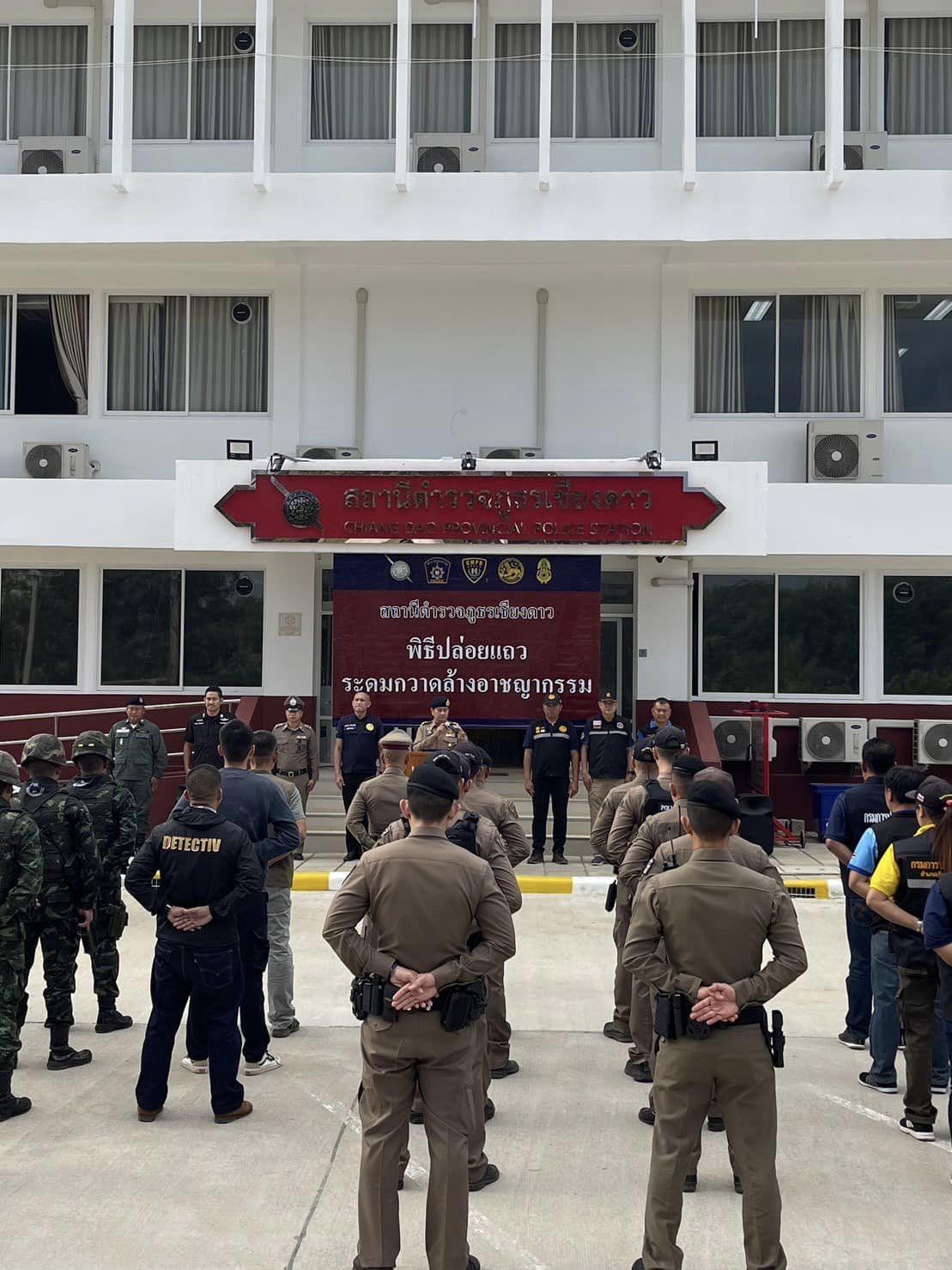 พ.ต.อ.เสกสรรค์ ขันคำนันต๊ะ ผกก.สภ.เชียงดาว ปล่อยแถวระดมกวาดล้างอาชญากรรมในช่วงเทศกาลปีใหม่ 2567 โดยมีนายกฤตพล รชตเมธานนท์ นายอำเภอเชียงดาว เป็นประธานในพิธีฯ
