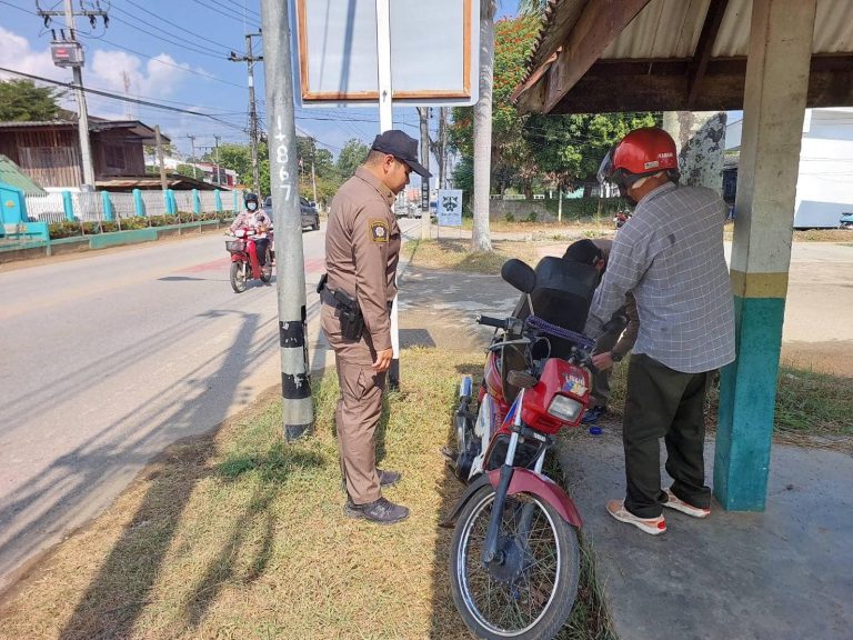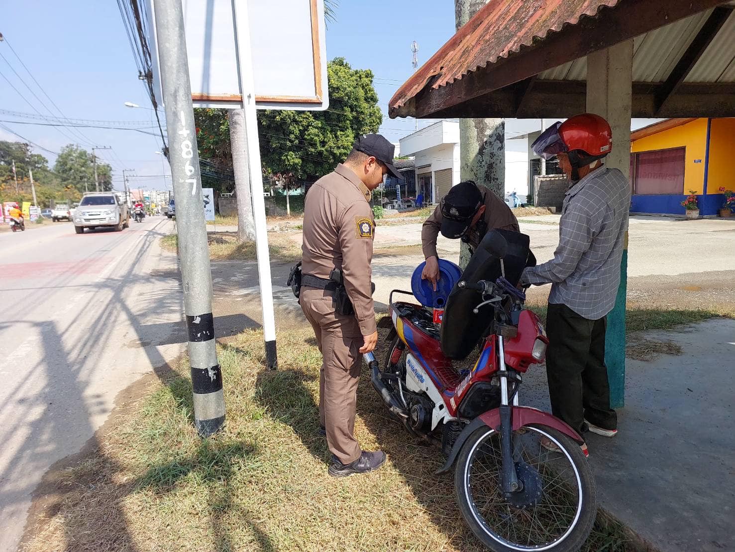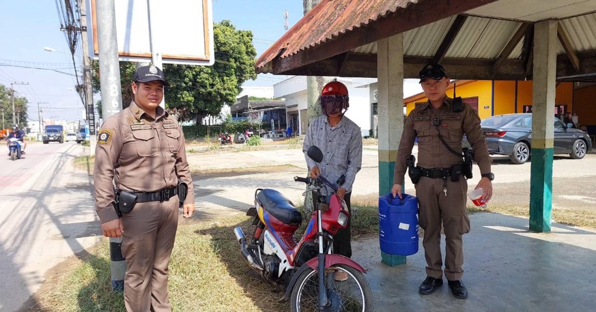 เจ้าหน้าที่ตำรวจช่วยเหลือจากประชาชนรถจักรยานยนต์ของตนน้ำมันหมด