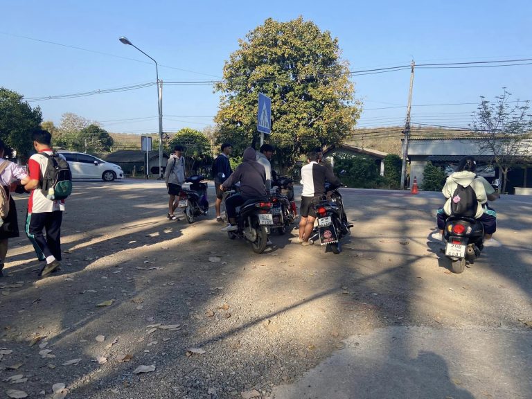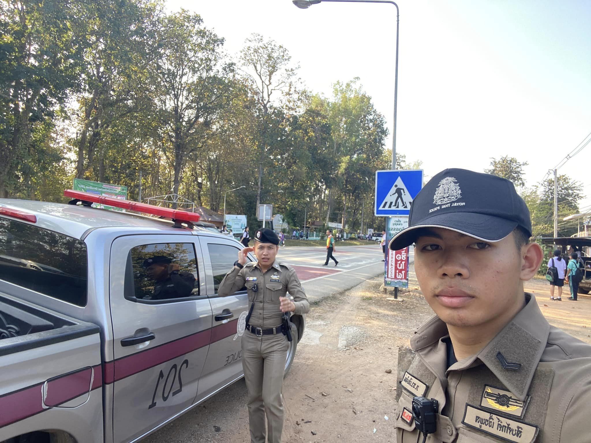 เจ้าหน้าที่ตำรวจอำนวยความสะดวกการจราจรเเละรักษาความปลอดภัยให้เเก่เด็กนักเรียนโรงเรียนเชียงดาววิทยาคม เเละผู้ใช้รถใช้ถนนมีความปลอดภัย