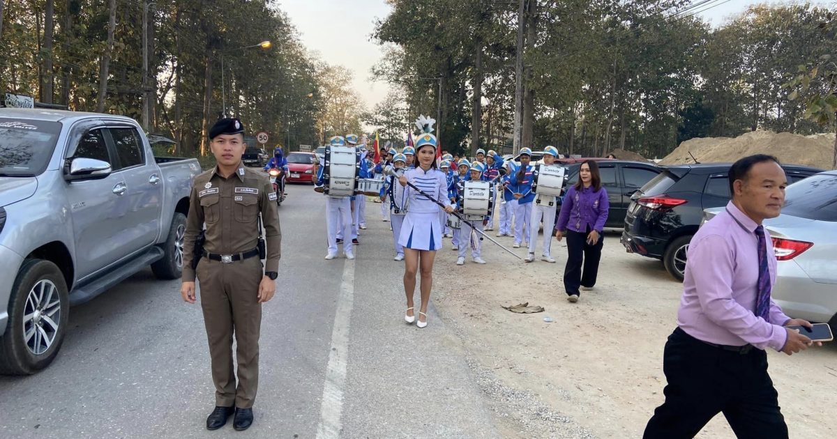 เจ้าหน้าที่ตำรวจอำนวยความสะดวกการจราจร และความปลอดภัยไตยกีฬาของโรงเรียนบ้านดอน โรงเรียนบ้านถ้ำ และโรงเรียนบ้านทุ่งละคร