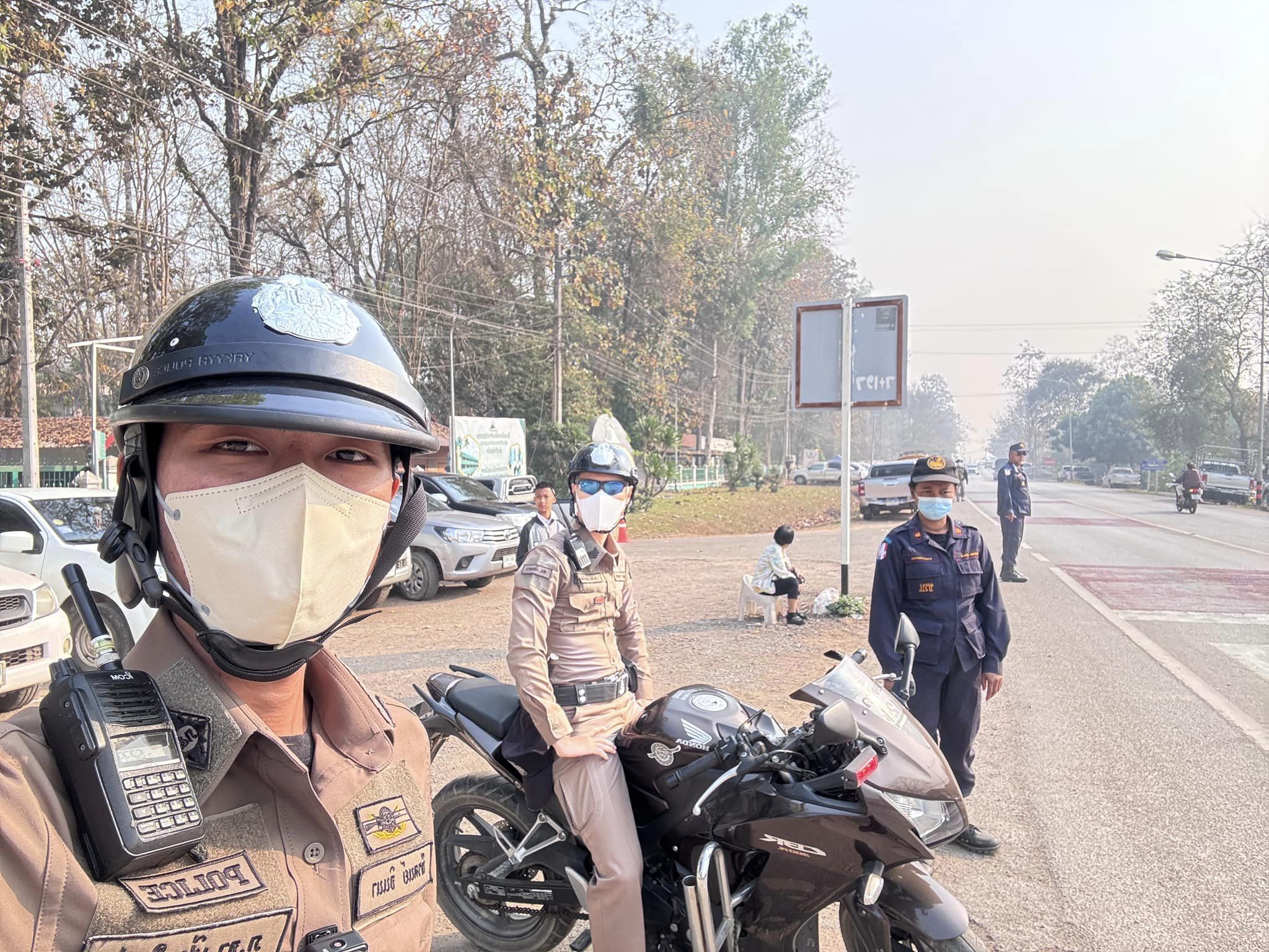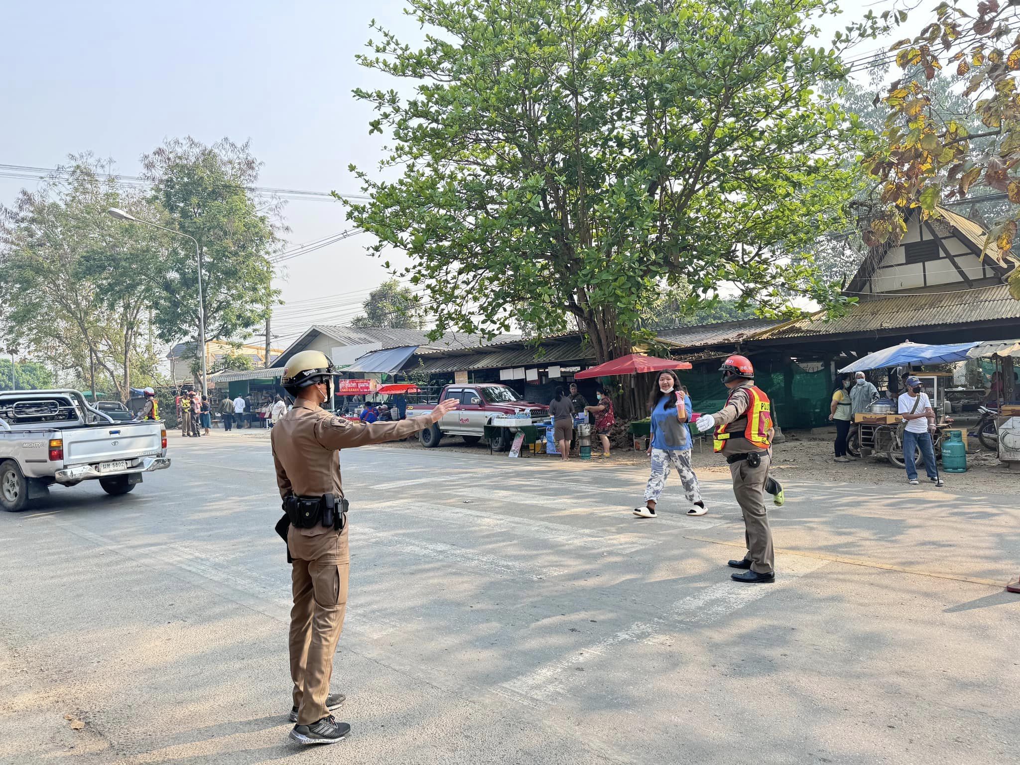 เจ้าหน้าที่ตำรวจอำนวยความสะดวกและรักษาความปลอดภัย โครงการ “พาหมอไปหาประชาชนเฉลิมพระเกียรติพระบาทสมเด็จพระเจ้าอยู่หัว ในงานมงคลเฉลิมพระชนมพรรษา” โรงพยาบาลเชียงดาว