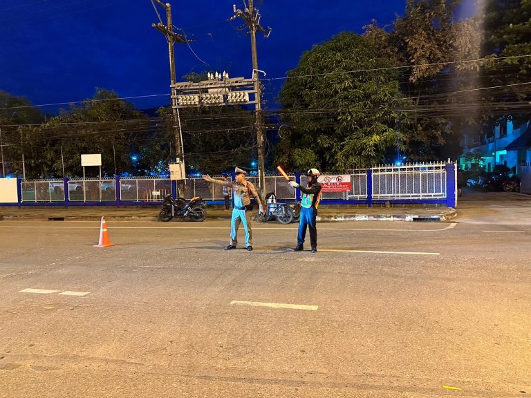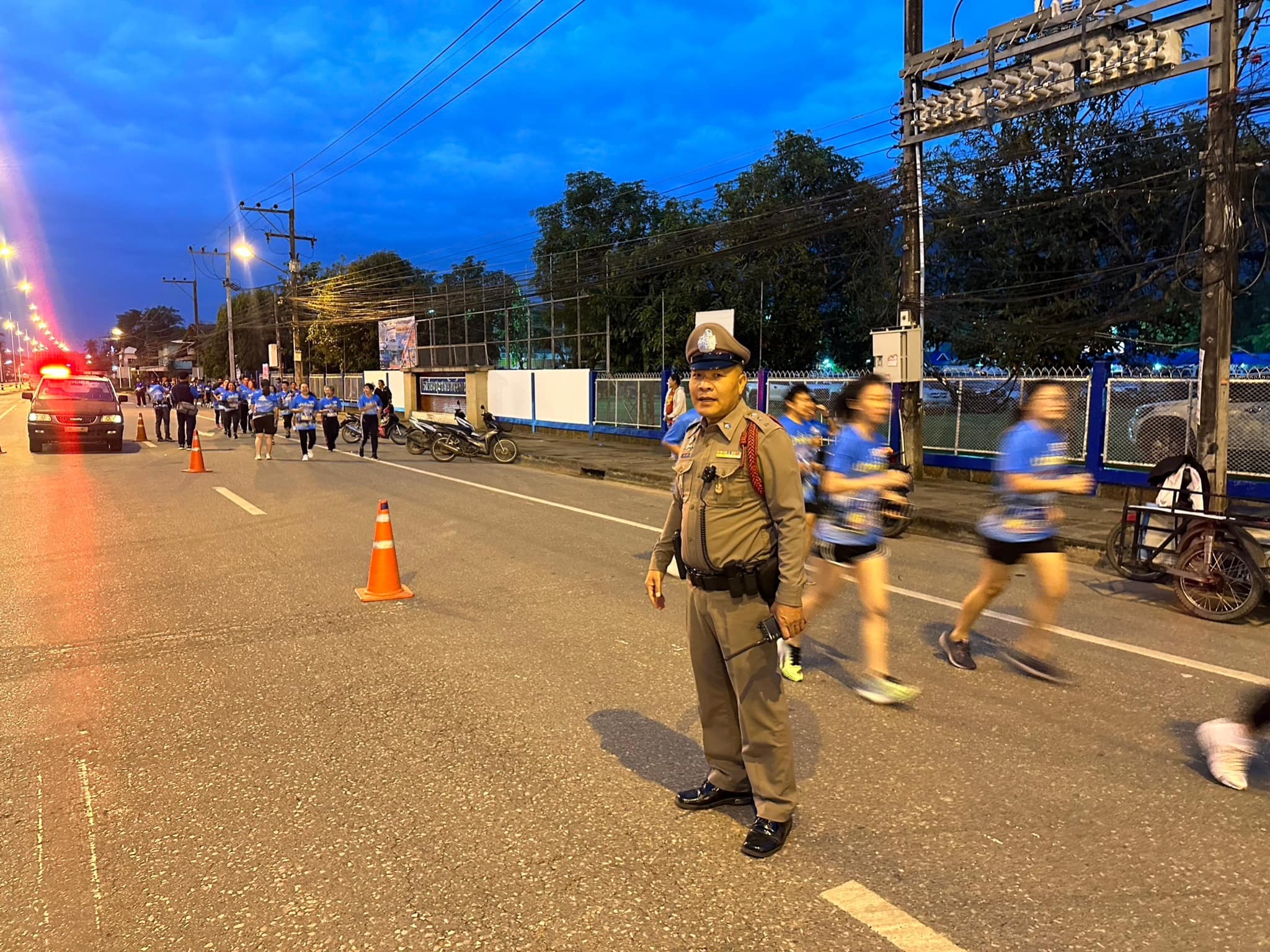 เจ้าหน้าที่ตำรวจอำนวยความสะดวกการจราจรในกิจกรรมวิ่ง “ปากั๋นล่น ๑๐๐ ปี เมืองงาย”