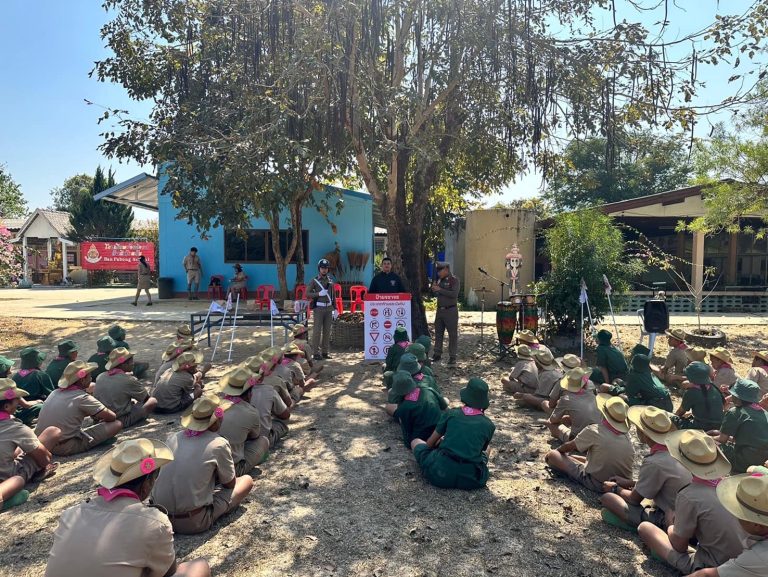 เจ้าหน้าที่ตำรวจได้รับเชิญให้ไปเป็นวิทยากรบรรยายให้ความรู้เรื่องการจราจร เกี่ยวกับเครื่องหมายจราจร เเละการใช้สัญญาณมือในการปฏิบัติหน้าที่ลูกเสือจราจร ของลูกเสือ-เนตรนารีโรงเรียนบ้านป่าบง