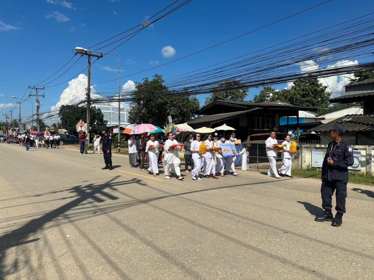 เจ้าหน้าที่สายตรวจ และจราจร อำนวยความด้านการจราจรเพื่อความปลอดภัยในการเดินขบวนและเพื่อป้องกันอุบัติเหตุทางถนน งานกฐิน อ.เชียงดาว ณ วัดอุตตาราม(วังจ๊อม)