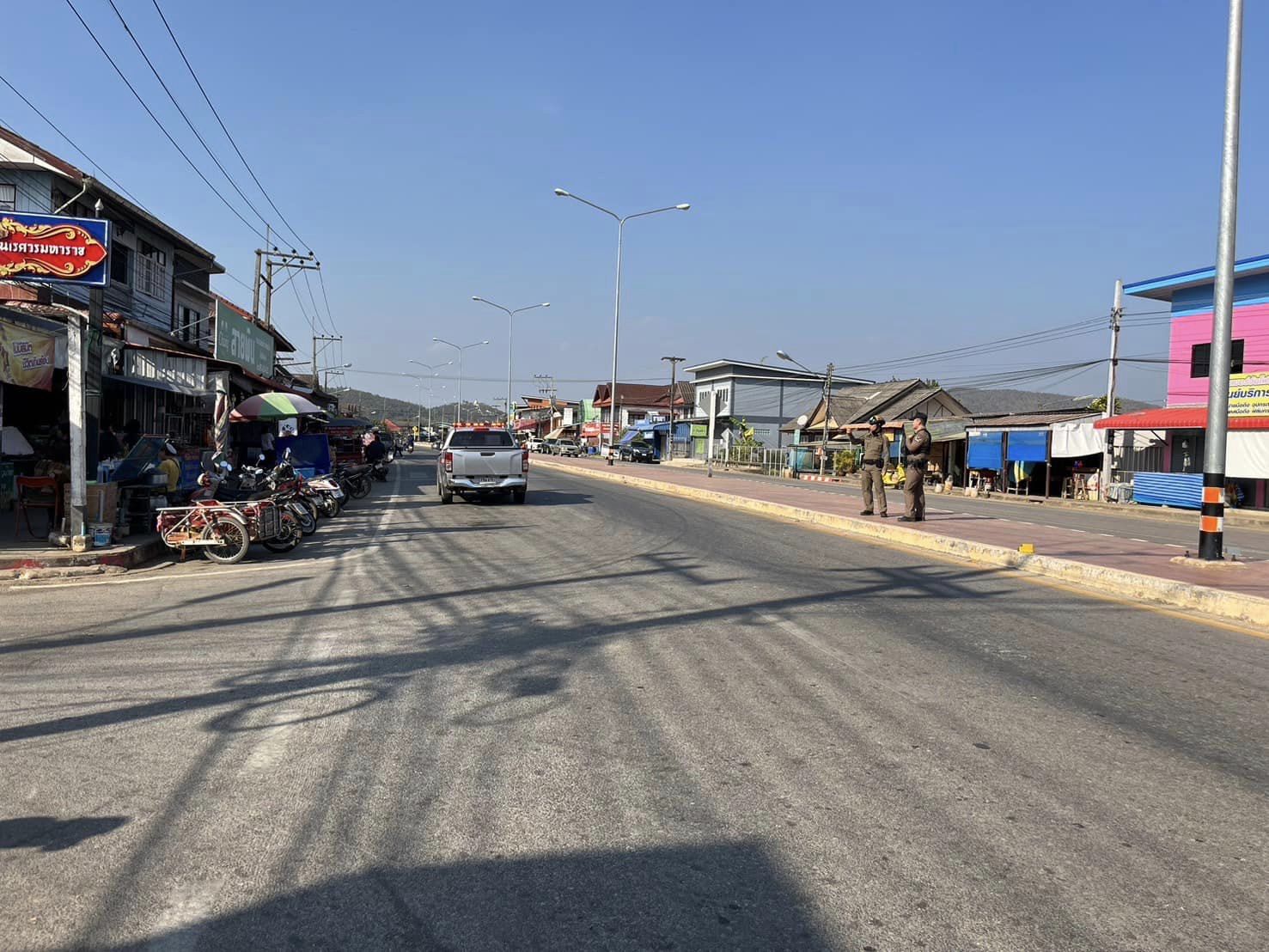 เจ้าหน้าที่ตำรวจร่วมออกปฏิบัติหน้าที่จัดระเบียบการจราจรหน้าตลาดเมืองงาย และประชาสัมพันธ์ห้ามจอดรถซ้อนคัน