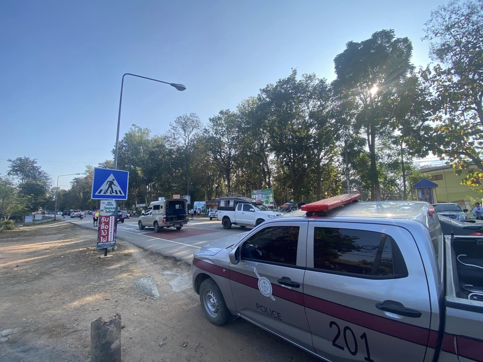 เจ้าหน้าที่ตำรวจร่วมออกปฏิบัติหน้าที่จัดระเบียบการจราจรหน้าตลาดเมืองงาย และประชาสัมพันธ์ห้ามจอดรถซ้อนคัน