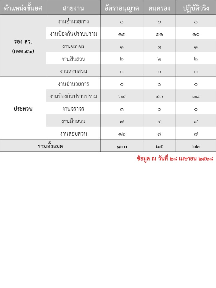 ข้อมูลอัตรากำลังพล สถานีตำรวจภูธรเชียงดาว